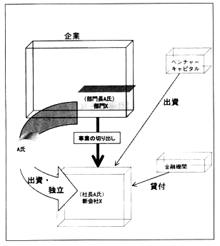 ここでは例として二つの制度を取りあげる。 第一はMBO (マネジメント・バイアウト) である。 MBOとは、 社員が実施している事業を別会社化し、 スピンオフしたその社員自身が出資をし、 経営にあたることを指す。 そう言うと、 まるで江戸時代の商人の 「のれん分け」 のようであるし、 これまでの日本企業では、 社内ベンチャー等を切り出す時に、 この 「のれん分け」 の方法がよく採用されていた。 つまり、 形態としてはさほど目新しいものではない。 しかし、 米国で普及したMBOには、 これとは徹底的に違うところがある。 それは、 親会社と切り出された企業の間に資本関係がなくなるという点である。 手続としては、 親会社が子会社を設立するに際し営業譲渡を行う。 現物出資である。 当然、 親会社は株主になるが、 この株式はベンチャーキャピタルや投資ファンドに売却される。 ここで親子の縁が切れる。 なぜ縁が切れることが重要なのか。 本格的な連結の時代を迎え、 親会社は親会社としてコア・コンピタンスを追求し、 選択と集中をすすめている為である。 小さな事業を切り出しても、 それが連結の対象になるのであればあまり切り出した意味はないのである。 社員の立場で考えるなら自分が馴れ親しみ、 ずっと続けて行こうと考えていたビジネスや研究開発から企業が手を引こうとする時、 そのビジネスを続けさせてくれるのがMBOである。 ただし、 親会社は手を引くのでそれだけ資金的には厳しい。 うまく投資ファンドやベンチャーキャピタルから資金を調達できたとしても、 相手は純粋にキャピタルゲインを求めるので、 事業には成長性が不可欠だし、 株式公開が想定されていなければならない。 この問題に対する最近の解決策としては、 金融業以外の企業、 すなわち事業会社が出資者になるというものがある。 出資の目的は、 優良な取引先の育成と確保である。 この場合投資主体はキャピタルゲインを求めないので、 MBOで設立された企業は短期的な収益性を気にせずに事業を続けることができる。 良い製品やサービスを効率的に生み出していればよいということである。 MBOという制度自体はいわゆる「舶来もの」であるが、 すでにその日本的な活用方法が生まれはじめている。 新たな和魂洋才というべきであろう。