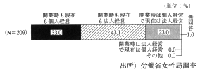 まず、企業規模についてだが、女性が興した企業は総じて規模が小さい。労働省調査(96年)によると平均像は資本金で1136.6万円、従業員数は39.9人という規模だ。女性起業家はもともと、それほど多くの資本を持って会社を興すわけではなく、手元の資金をかき集めて起業するのが普通である。その割に従業員数は相対的に多いのが印象的で、女性企業は人手がかかるサービス業が多いためとみられる(図1参照)。 女性企業は当然のことながら、男性よりも女性をたくさん雇用する。労働省調査でも従業員の9割が女性となっている。サービス業の比重が高く、女性向きの仕事が多いせいでもあるが、やはり女性起業家たちに「後に続く同性を大事にしたい」という思いがあるのだろう。 そのせいか、女性企業は女性が働きやすい職場づくりに力を入れている。日経調査(92年)によると、産前・産後の休暇制度は52.3%と過半数が導入している。出産・育児でいったん会社を辞めても再び職場に復帰できる再雇用制度も42.3%と半数近くが実施している。女性経営者だけに、女性社員への配慮が厚いのだろう。 ところで、女性起業家はなぜ会社を興そうとするのだろうか。労働省調査によると、女性起業家の開業動機として「好きな分野・興味のある分野で仕事をするため」(50.5%)が一番多かった。次いで、「年齢に関係なく働くことができる」、「自分の能力を発揮するため」などが続いた(図2参照)。これは、女性が自分の能力発揮の場を求めて起業に向かうということだ。一般の企業社会ではまだ女性の活動にはいろいろな制約がある。 いっそのこと、自分で会社を興し、自分の力を試す仕事をしてみたいと思うのも当然だろう。女性がキャリアパスの一つとして、いまや起業を選ぶようになってきたといえる。 女性の社会参加がいわれて久しいが、女性の起業とは「会社経営という形で社会に参加していこう」ということなのである。 また、女性起業家はどのように会社を興し、どのような会社の姿を目指しているのだろうか。事業を始める際だが、労働省調査によると、仲間と一緒に起業する人もいるが、一人で興す人の方が多いようだ。「開業時も現在も個人経営」(33.0%)と「開業時は個人経営で現在は法人経営」(23.0%)を含めると約6割となっている(図3参照)。スタートさせる事業の形態としては、最初から株式会社などの法人形態をとる以外に、個人企業、SOHOとして始めるケースが少なくないと言われている。個人企業の場合は、事業規模の拡大につれて、組織形態を整えていくのである。ある段階を過ぎて最終的には、ほとんどの女性企業が法人形態をとっている。 では、女性起業家は経営に際して、どのような経営理念を立てているのか。日経調査(複数回答)によると、最も多かったのは、「従業員の満足を得られるような企業になる」(67.1%)だった。次いで、「社会にとって有意義で、社会に貢献できる企業になる」(58.8%)、「他の人と大きく異なる自己の信念を実現する企業になる」(35.9%)の順になった。多くの女性企業家は規模拡大よりも夢を企業経営に求めているといえそうだ。 | |||||